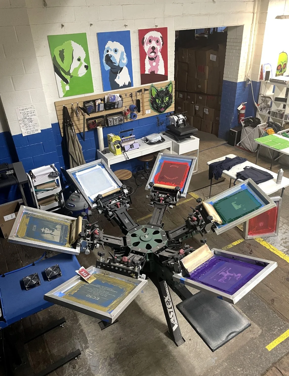 We love sharing what we’ve learned with you. Gather 10-30 friends, family or co-workers for a 2 hour unique experience learning what goes into making a tshirt by making one yourself on press. Set in a relaxed atmosphere, bring food and drinks to set the scene. Check out our “Inks and Drinks” section for pricing and more info.